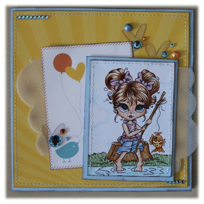 I kept this card fairly simpel, with just a single sheet of patterned paper. I really love all that's going on in the image, and didn't want it to get lost in to many papers and embellishments. So a bright sunray paper was really all I wanted, together with a few embellishments..